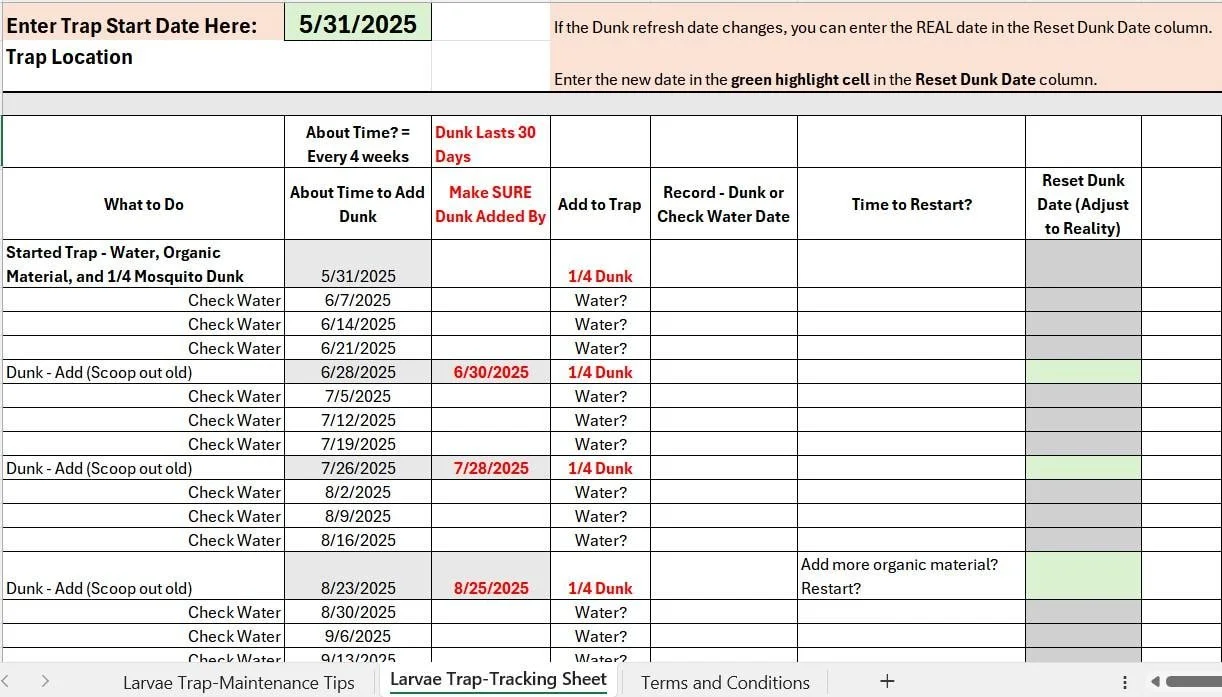 How-To and Maintenance How-To and Maintenance Clear Filters Categories Select a Category Jarless Traps How-To and Maintenance Hanging Traps Stand-alone Traps Filter Clear Filter Master the Season: Mosquito Larvae Trap Maintenance Tracker and Tips - Excel Workbook Download Only $3.00 Add To Cart Added! Reduce Mosquitoes - DIY - Mosquito Larvae Trap (No Kit) Instructions - PDF Download Only $3.00 Add To Cart Added! No results found No results match your search. Try removing a few filters.