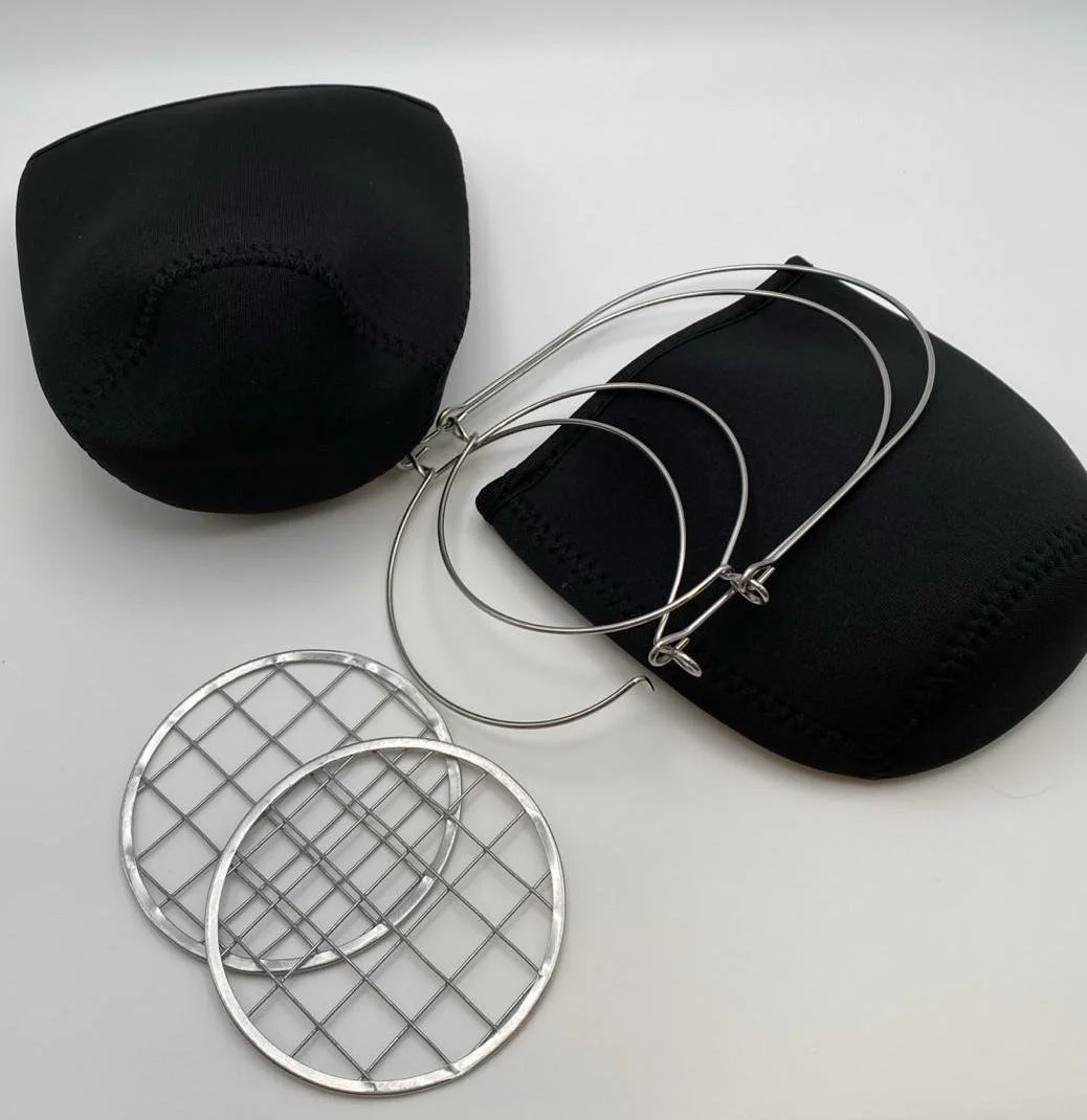Kit Contains: 2 Stainless Steel Rims, 2 Tin Grid Inserts, 2 Neoprene Covers, 2 Stainless Steel Hangers, 2 Metal 11.2 Inch Black Rain Covers